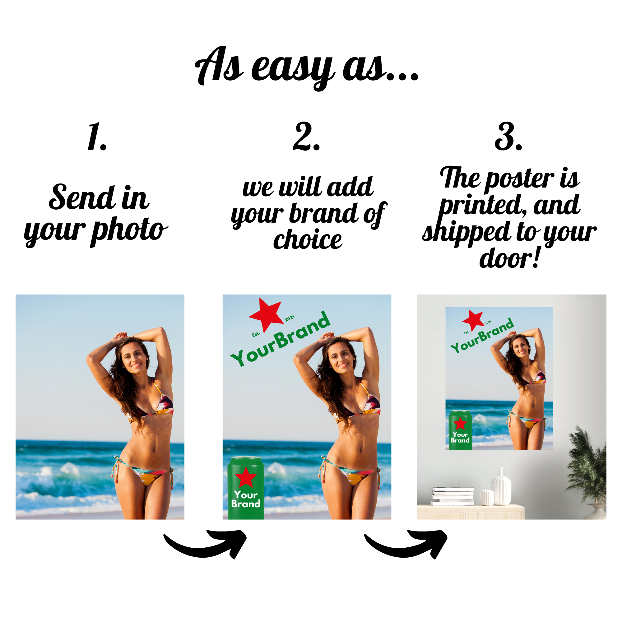 Upload your picture and beer brand and we will edit your photo and print it on your product with FREE shipping included!