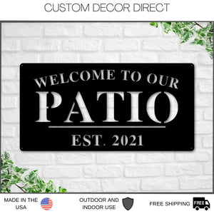 Welcome to Our Patio Sign, Personalized Patio Name Sign, Outdoor patio Sign, Backyard Decor, Welcome Sign, Personalized Sign, Metal, Patio