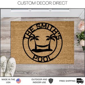 Welcome Pool Doormat, Personalized Doormat, Family Pool Doormat, Last name Doormat, Swimming Pool Doormat, Patio Rug, Wedding Gift, Porch
