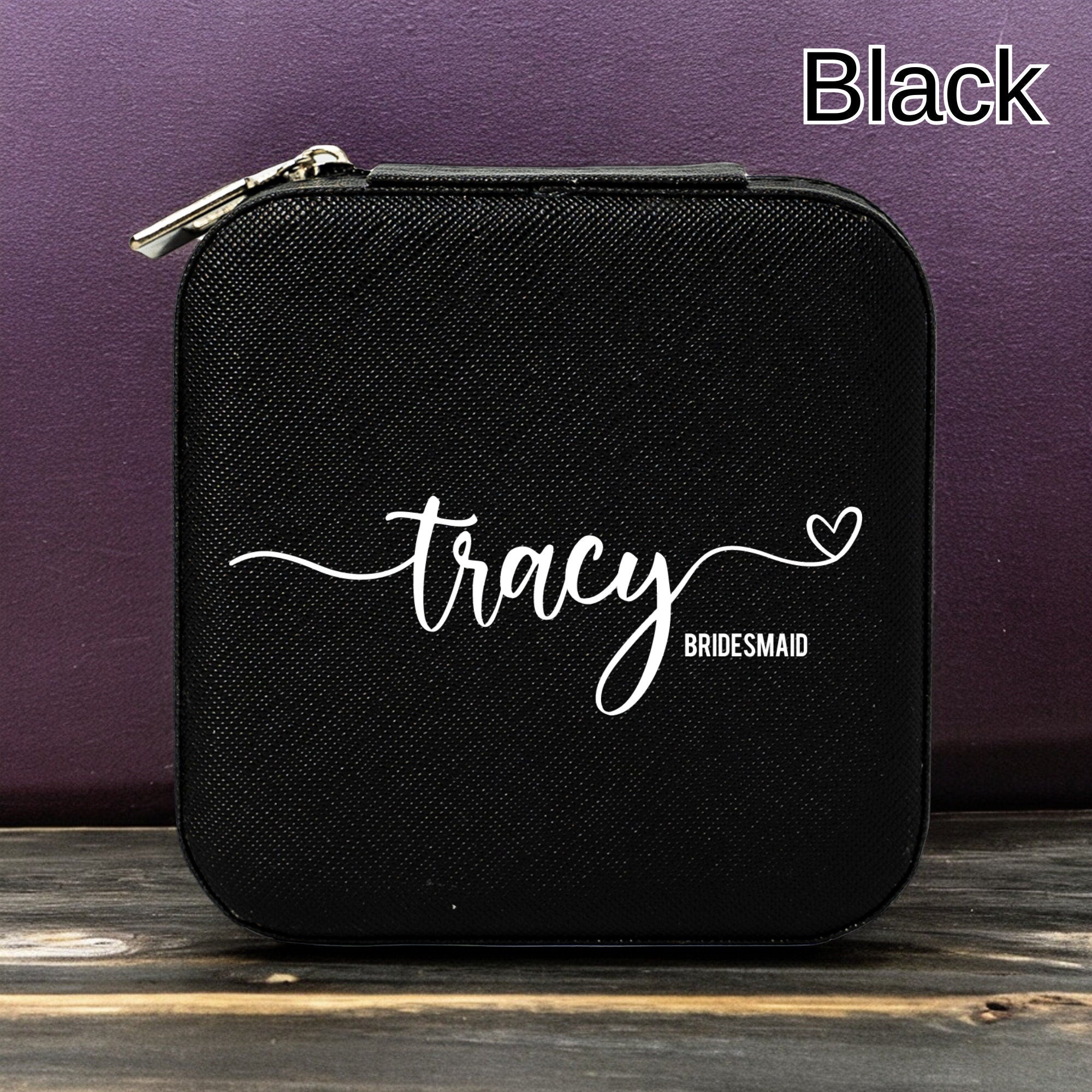 Carry your favorite jewelry in style with our personalized travel jewelry box featuring your name elegantly displayed. This zipper compact box is perfect for keeping your treasures safe and organized while on the go. A thoughtful and unique gift for any jewelry lover!